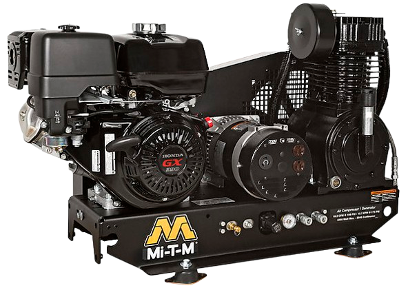 Combining two machines into one, this air compressor/generator combination unit is great for completing multiple jobs requiring both air power and electricity. These units can be easily mounted on a service truck or trailer.